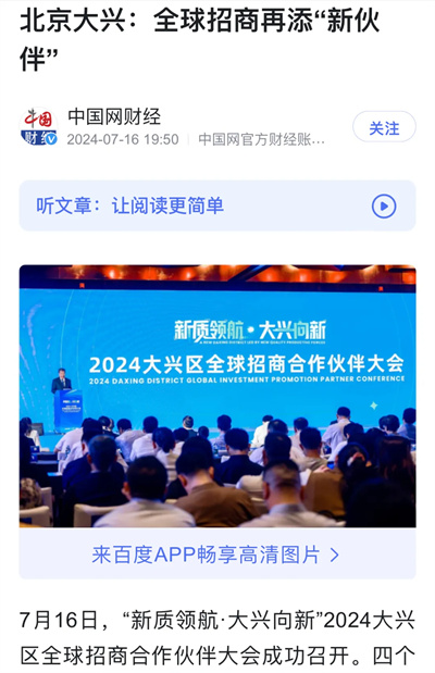 此外,北京大兴官方发布、大兴区政府融媒体中心、投资大兴、这里是大兴、北京中日国际创新合作示范区管委会等大兴区政府媒体相继进行报道。