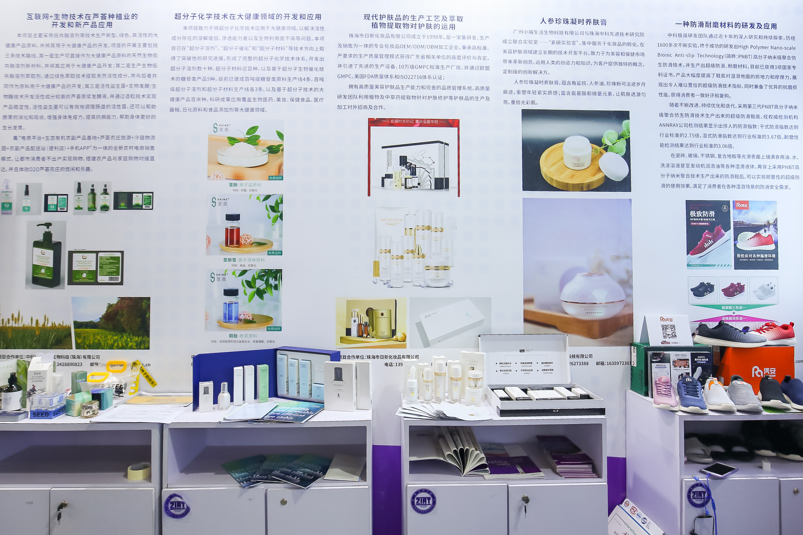 珠海先进院参展的重点项目有珠海外伶仃岛海洋生物产品开发、超分子化学技术在大健康领域的开发和应用、互联网+生物技术在芦荟种植业的开发和新产品应用、非接触式人体体征检测仪、现代护肤品的生产工艺及萃取植物提取物对护肤的运用、校园安全双重防控平台、OptoDoc超广角AI眼底诊疗系统、酸性氧化电位水生成器、一体式、超声波臭氧妇科治疗仪、钛镍记忆合金钉包皮环切吻合器及缝合线、自吸过滤式防颗粒物半面罩(FFP2)、医用外科口罩(Type IIR)、指静脉生物识别技术等。