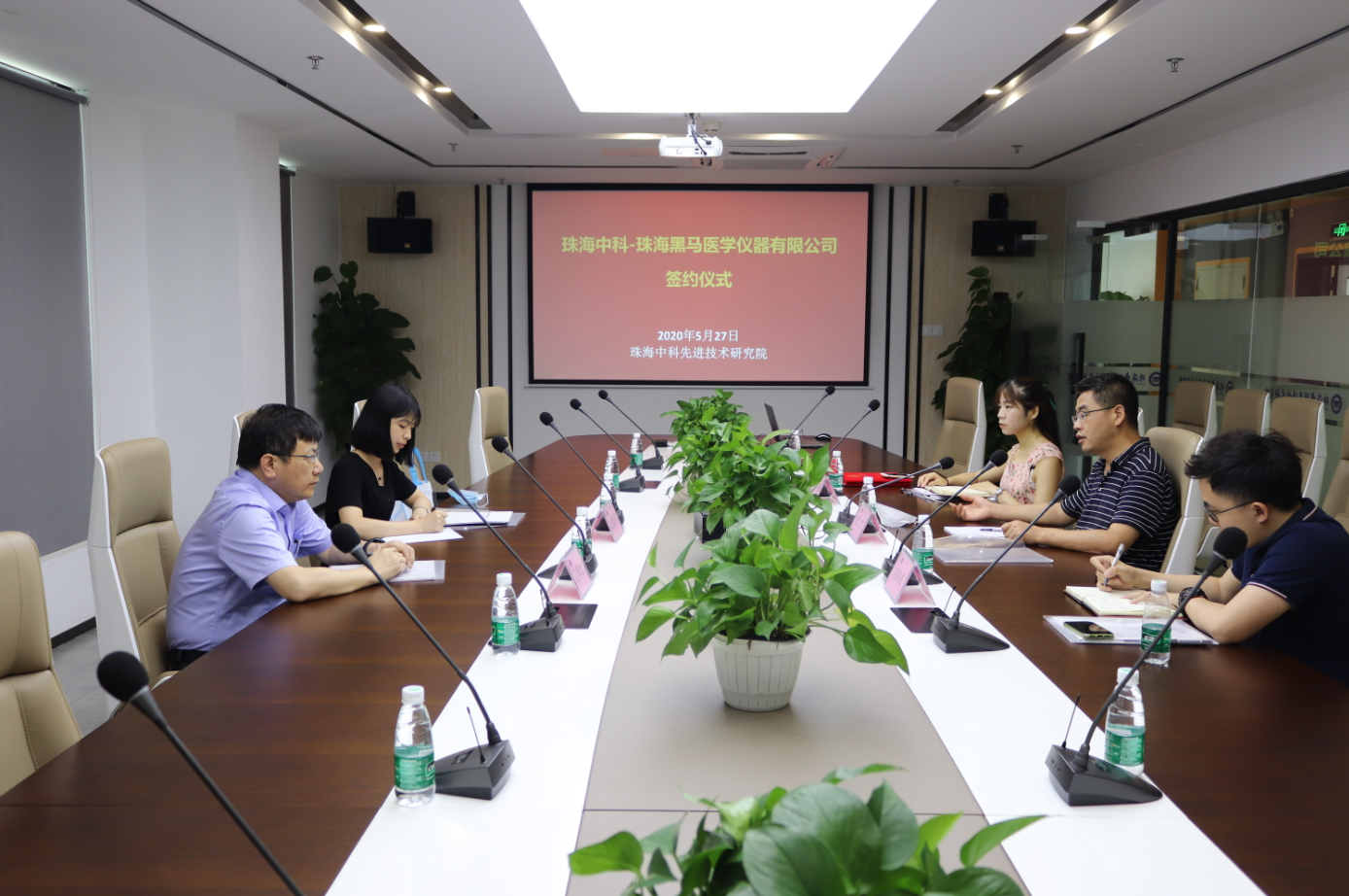 2020年5月27日上午,珠海先进院与珠海黑马医学仪器有限公司(以下简称“珠海黑马医学”)举行签约仪式,确立双方战略合作关系,并共同成立医疗器械联合实验室。