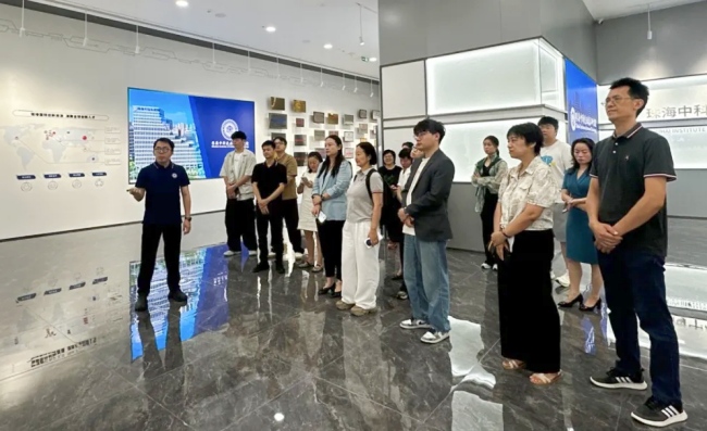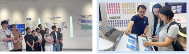 参观团首先参观了珠海先进院形象展厅和创新成果展厅,郭伟成总监系统介绍了珠海先进院的发展历程、运营模式及在科研创新、人才引进、产业合作、科普教育等方面取得的显著成效。其中,展厅最新推出的“成果超市”展区成为展示重点,该展区通过“扫码识成果”的创新形式,实现技术参数、应用场景、合作需求等信息的可视化呈现,精准打通科研成果与产业需求的对接通道,加速创新链与产业链融合。