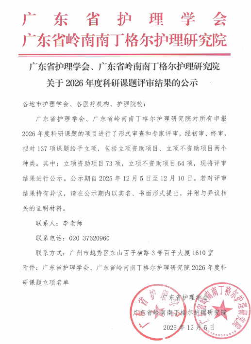 2025年12月20日,广东省护理学会、广东省岭南南丁格尔护理研究院发布2026年度科研课题评审结果,其中,由中山大学附属第五医院(简称“中大五院”)作为牵头单位,联合珠海中科先进技术研究院(简称“珠海先进院”)共同申报的《基于机器学习的术中低体温风险动态预测模型构建与智能预警系统研究》项目成功获批立项。