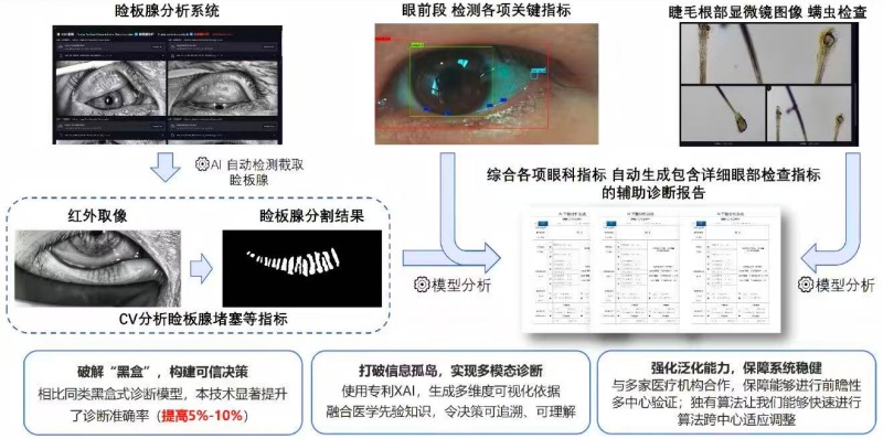 2.关键技术突破:成功研制了包括轻量化AI眼底辅助诊断算法与便携式AI干眼分析系统在内的多项创新技术,在确保高精度诊断的同时,实现了算法决策过程的可视化与可解读。